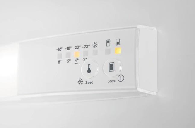 -: FastFreeze funkcija – se uporablja za predhodno zamrzovanje in hitro zamrzovanje drugo za drugim v zamrzovalniku. Ta funkcija pospeši zamrzovanje svežih živil in hkrati zaščiti že shranjena živila v predelku zamrzovalnika pred neželenim segrevanjem.