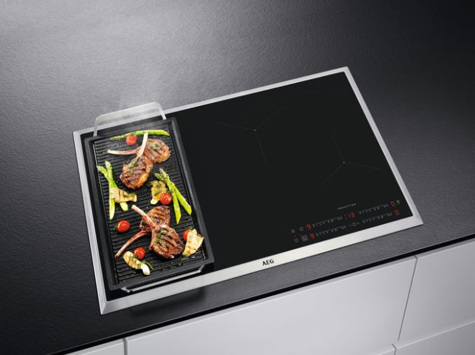 Indukcijska kuhalna plošča AEG IKE84471XB širine 77 cm ima 4 kuhališča z možnostjo povečanja moči PowerBoost. Posebna leva kuhalna površina je razdeljena na 4 segmente, ki s pomočjo funkcije FlexiBridge dovoli, da izberete segmente, ki bi jih radi povezali skupaj in tako pridobili primeren prostor za posodo. Če veste, da bo kuhanje zahtevalo hitre in pogoste spremembe temperature, uporabite funkcijo PowerSlide, s katero premaknete posodo, ne da bi spremenili izbrani način z uporabo treh predhodno določenih temperaturnih nastavitev: visoka, srednja in nizka. Kuhalno ploščo odlikuje tudi edinstvena brezžična povezava Hob2Hood, ki samodejno vklopi in nastavi intenzivnost ventilatorja kuhinjske nape (določeni modeli) glede na potrebe pri kuhanju. Plošča ima med drugimi funkcijo Stop&Go za kratke prekinitve kuhanja, timer, indikator preostale toplote in možnost varnostnega zaklepanja.