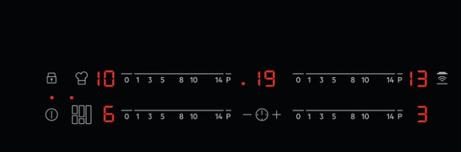 -: Funkcija PowerSlide – Funkcija razdeli indukcijsko kuhalno površino na tri področja z različnimi stopnjami kuhanja. Kuhalna plošča zazna položaj posode in nastavi stopnjo kuhanja glede na položaj. Posodo lahko postavite spredaj, na sredino ali zadaj. Če posodo postavite spredaj, je zagotovljena najvišja stopnja kuhanja. Za znižanje stopnje premaknite posodo na sredino ali nazaj.