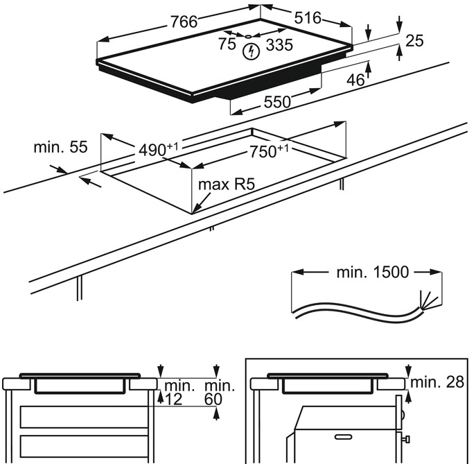Vgradne dimenzije (VxŠxG mm): 46x750x490