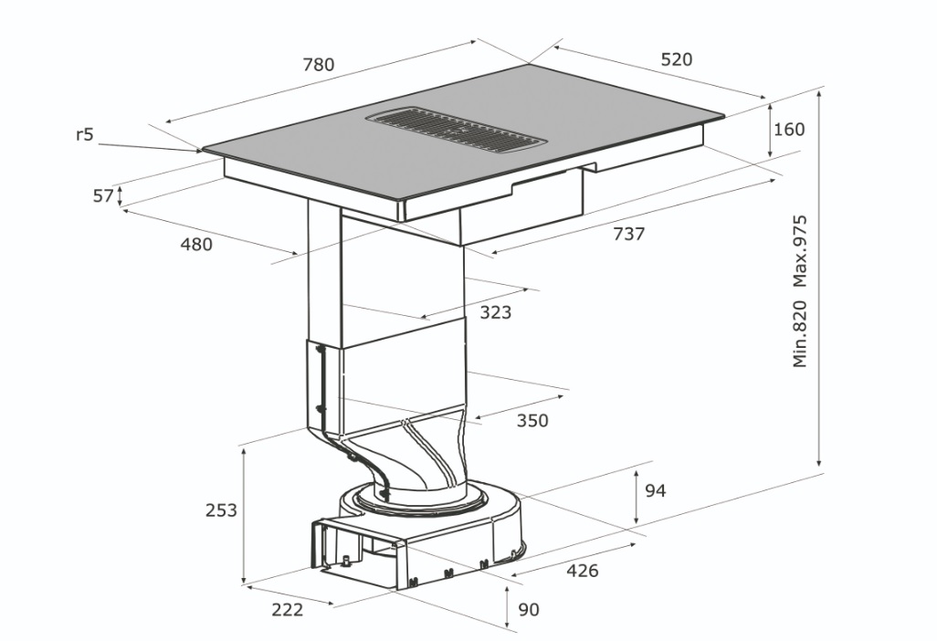 Indukcijska kuhalna plošča z integrirano napo Airforce Centrale 78 B2 Octa Telescopic predstavlja revolucijo v kuhinji, kuhalno ploščo in napo skupaj v enem aparatu. Sesalni del nape je postavljen v sredino, tako da je sesanje par in vonjav enakomerno za vsa štiri kuhališča. Nič več udarjanja z glavo ob napo, prav tako pa vsa kuhinja postane pregledna in svetla. Tudi pri čiščenju ta izdelek prinaša prihranke, saj ni dodatnih površin, ki bi jih bilo potrebno čistiti. Kovinski maščobni in ogleni filtri se enostavno čistijo ali menjajo. Poleg zmogljive indukcijske kuhalne plošče je tu tudi napa v odličnem energetskem razredu A+, kar pomeni da na letni ravni porabi neverjetno malo, le 24,5 kWh. Upravljanje za kuhalno ploščo in napo na kuhalni plošči, zato ima kuhar z enim pogledom vse pod kontrolo.