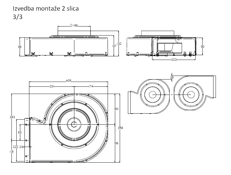Pretok zraka pri intenzivni ali pospešeni nastavitvi: 632 m3/h