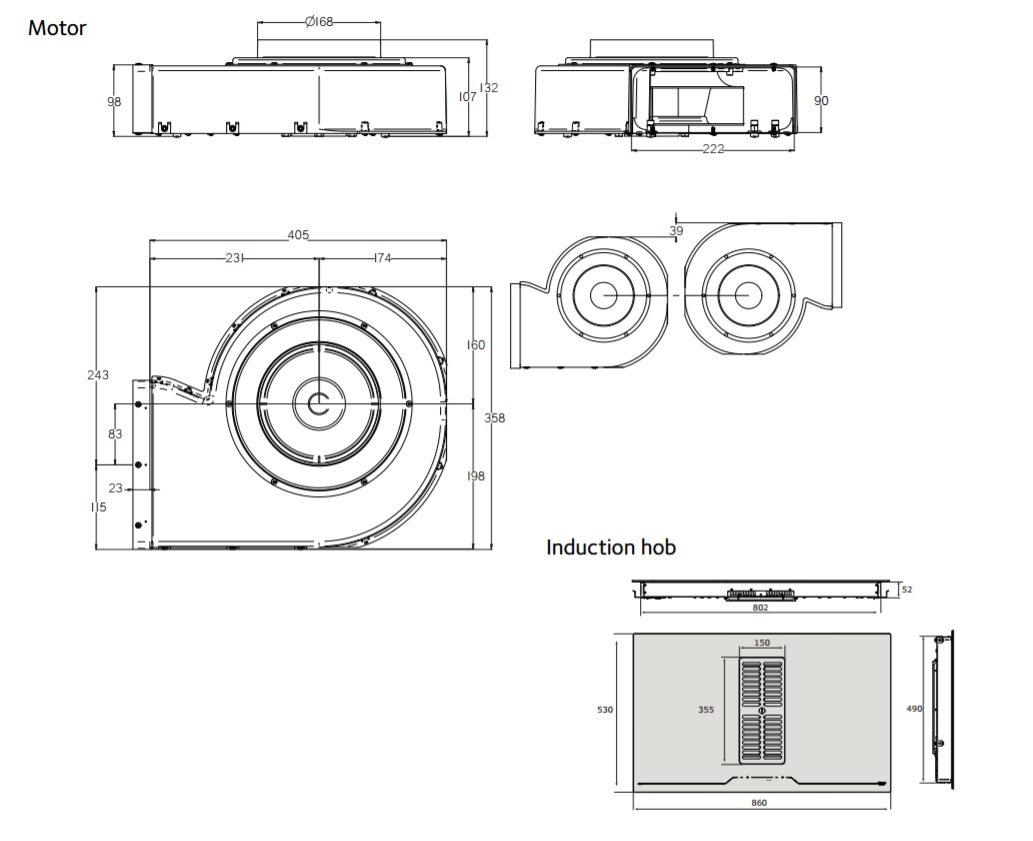 Indukcijska kuhalna plošča z integrirano napo Airforce Centrale B2 Octa predstavlja revolucijo v kuhinji, kuhalno ploščo in napo skupaj v enem aparatu. Sesalni del nape je postavljen v sredino, tako da je sesanje par in vonjav enakomerno za vsa štiri kuhališča. Nič več udarjanja z glavo ob napo, prav tako pa vsa kuhinja postane pregledna in svetla. Tudi pri čiščenju ta izdelek prinaša prihranke, saj ni dodatnih površin, ki bi jih bilo potrebno čistiti. Kovinski maščobni in ogleni filtri se enostavno čistijo ali menjajo. Poleg zmogljive indukcijske kuhalne plošče je tu tudi napa v odličnem energetskem razredu A++, kar pomeni da na letni ravni porabi neverjetno malo, le 24,5 kWh. Upravljanje za kuhalno ploščo in napo na kuhalni plošči, zato ima kuhar z enim pogledom vse pod kontrolo.