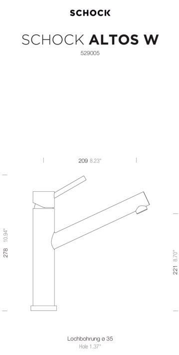 SCHOCK kuhinjska armatura ALTOS narejena iz plemenitega jekla zagotavlja odlični mehansko odpornost in trajnost. Armatura se lahko sname iz pulta brez vijačenja, zato je primerna za montažo ob oknu.