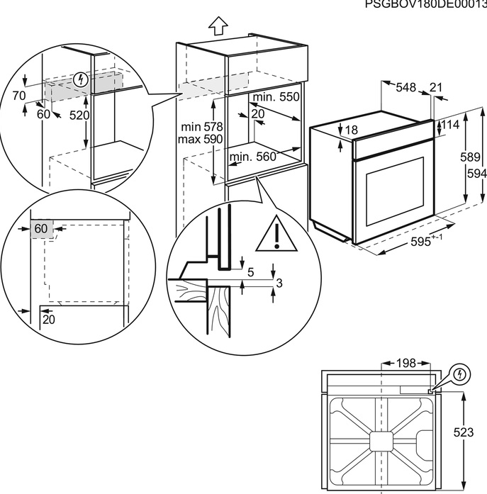 Funkcije: gretje spodaj, konvekcijsko/tradicionalno, hitri žar, žar, luč, vlažno pečenje, program za pizzo, pečenje z ventilatorjem, turbo žar