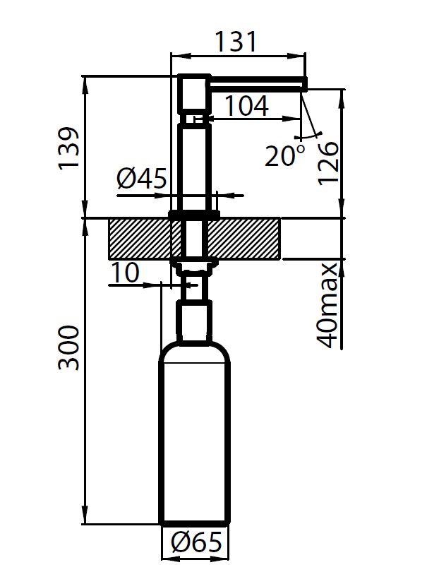 Zamik izliva iz osi dozirnika (mm): 131
