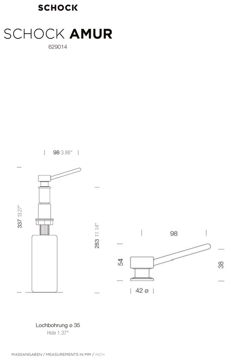 Dozirnik tekočega mila se lahko montira na katerokoli pomivalno korito ali drugam, kjer je zagotovljena odprtina za montažo premera 35 mm in maksimalno debelino materiala 43 mm.