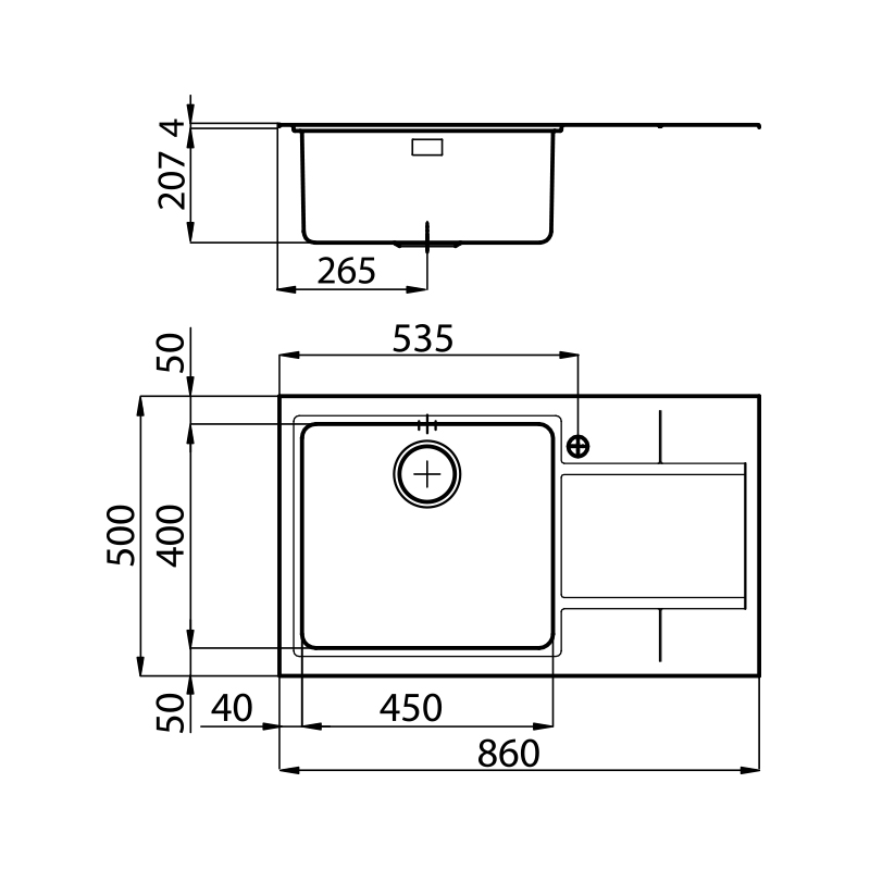 Velikost korita: 860 x 500 mm