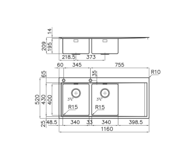 Velikost korita: 1160 x 520 mm