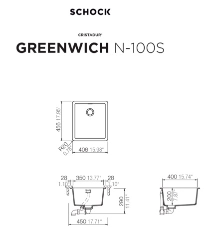 Pomivalno korito SCHOCK Greenwich N-100S v materialu CRISTADUR® ima dolgo življenjsko dobo in vrhunsko zasnovo. Korito je popolno za manjše kuhinje z omejenim prostorom.