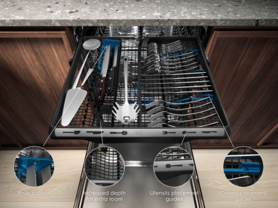 -: 3 košare – spodaj, mala FlexiLift in zgoraj MaxiFlex (predal za jedilni pribor)