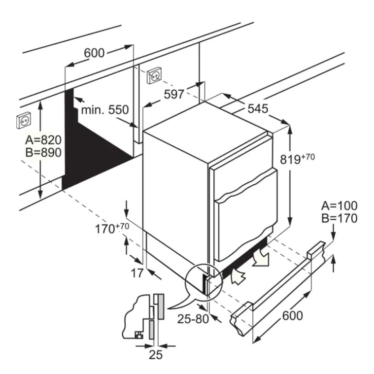 Vgradne dimenzije (VxŠxG mm): 820x600x550